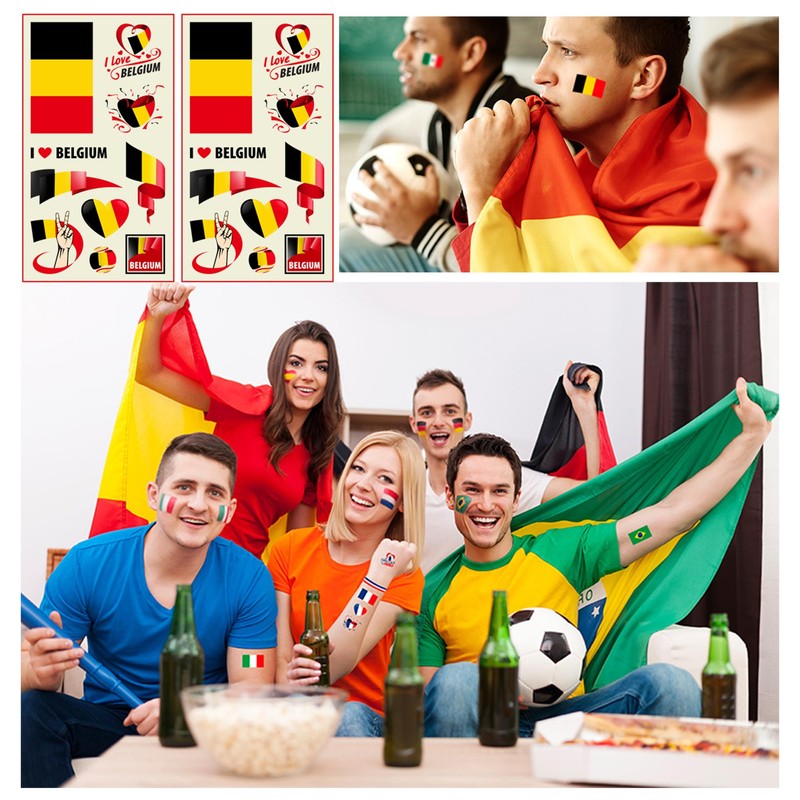 - 🚩Small Belgium Flags, Belgium Temporary Tattoos -- It is great for World Cup football, Oly Games, Euro Football Championship 2024 and other sports events, patriotic themes, National Day celebrations, parades, elections, bars, streets, gardens, offices and other parties essential decorations supplies.