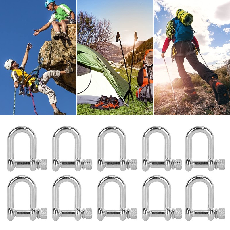 - PRACTICAL U SHACKLES: The U‑shaped buckle is suitable for outdoor camping paracord survival bracelets and very practical, Stainless Steel Bow ring shackles are designed to handle heavy loads and provide a secure connection for various applications, including anchor chains, sailboat rigging clasp and anchor rope