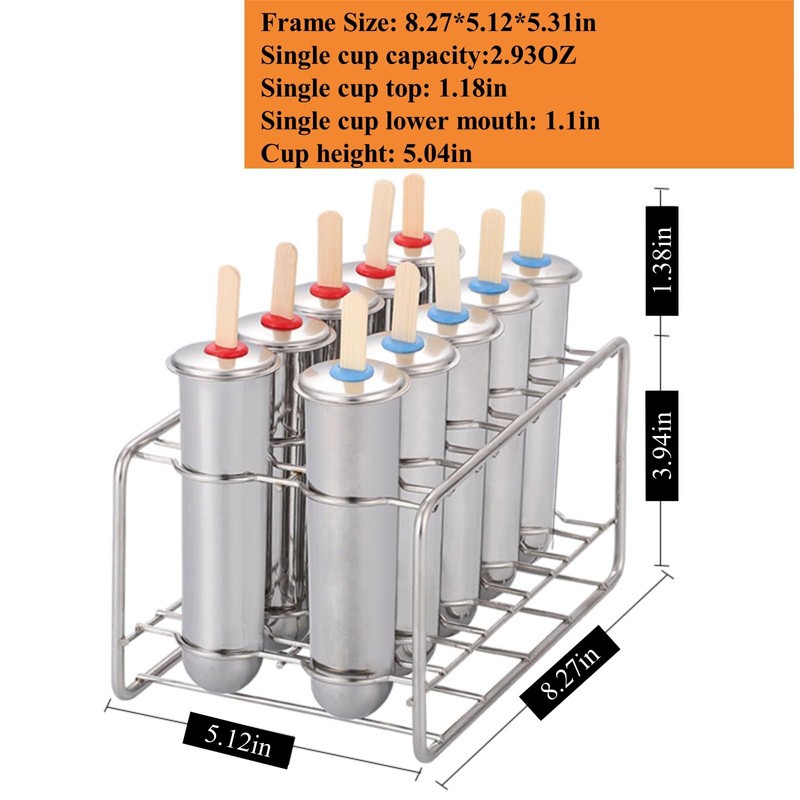 - 85Ml Per Mold: 85ml per mold,L4.3xW0.8xH2.0 inch/per mold. Ice Cream Stick Holders made of food grade 304 stainless steel material, Thickening design, safe and secure.Can be directly exposed to food.