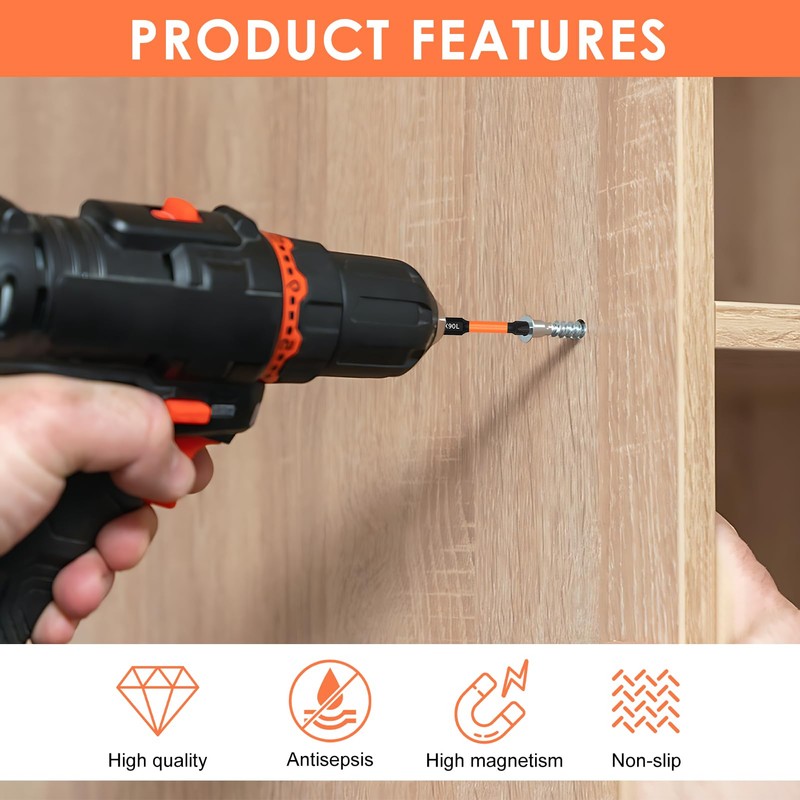 - Magnetic Tip: Each magnetic drill bits is equipped with a magnetic tip that holds screws firmly in place during operation. This feature improves stability and handling, especially when driving into vertical or hard-to-reach positions, ensuring greater accuracy and convenience.