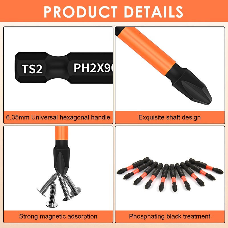 - High-Torque Impact-Ready Design: Built from premium heat-treated alloy steel, each impact driver bits is engineered to withstand high-torque output from standard and impact drivers. Anti slip screwdriver bits ideal for professional contractors and DIY users working on demanding fastening applications.