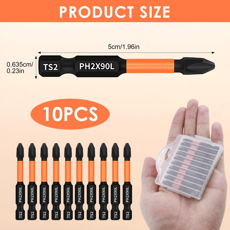 - Precision-Milled Tips: Each magnetic screwdriver bits is crafted with a high-precision profile for a perfect screw fit, reducing cam-out and slippage. This allows for greater control, faster fastening, and cleaner finishes with minimal damage to screw heads—even under pressure.