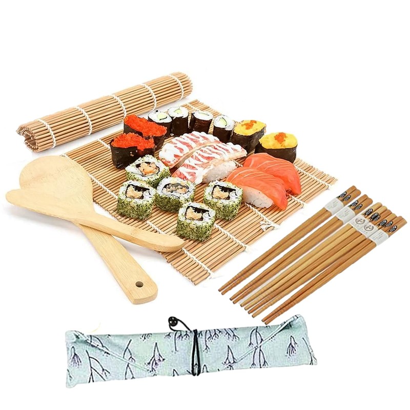 - Sushi Making Kit: Includes 2 bamboo sushi rolling mat, 1 rice spreader, 1spoon, and 5 pairs of chopsticks. All are easy for sushi beginners and first-timers. you can mix and match the shape you want to form different styles of creative sushi.