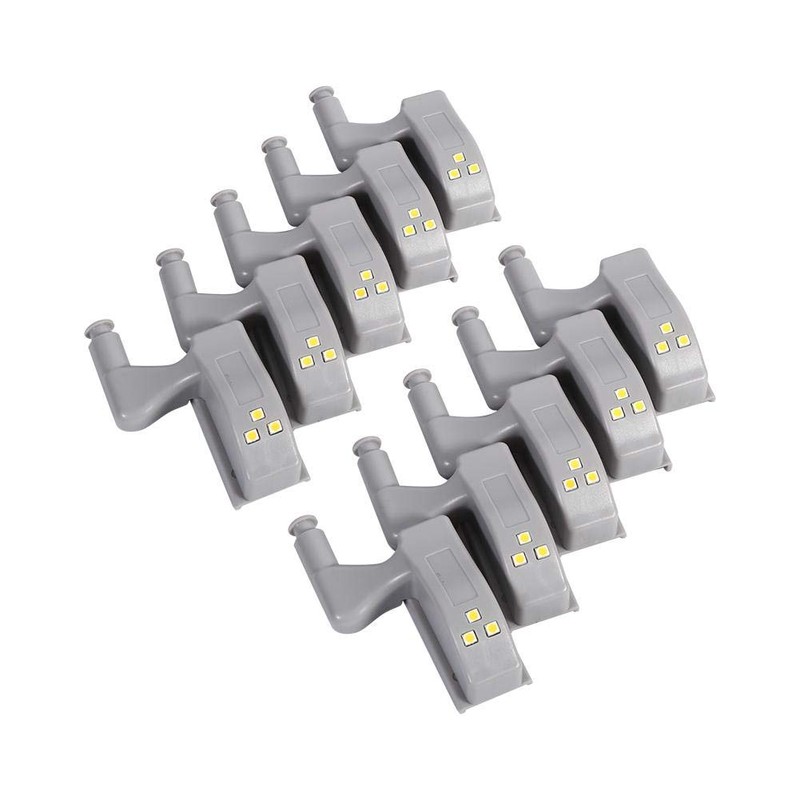 **Description:** Our cabinet hinge light is very easy to install and convenient to use, it will bring much convenience for you when you find stuffs in your home cabinet, cupboard, closet or wardrobe. After installing on the hinge with battery, you just need to open the door, it will lighten up whole cabinet. And it has properties of high brightness and lower power consumption, so it is really a practical and affordable cabinet light, if you need such cabinet light, come on and choose ours! **How To Install:** 1\. Screwing off the screws of hinge, put the base part on it correctly. 2\. Using screws to screw up the hinge and base part. 3\. Installing the battery(Not included) in the led light. 4\. Inserting the led light to the base part. 5\. Finishing the whole installation. **Specifications:** Condition: 100% Brand New Material: ABS Color: Grey Lighting Color: Warm white, cool white (Optional) Battery: 12V 23A (Not Included) Type: Smart Sensor Bead Quantity of Each Light: 3pcs Main Body Size(L x W x H): Approx. 8 x 5 x 5cm / 3.1 x 2 x 2inch (Including the base part) Package Weight: Approx.135g Quantity: 10pcs **Package Included:** 10 x Cabinet Hinge Led Lights (Batteries are not included) **Please Note:** 1\. Please allow 1-3cm error due to manual measurement. Thanks for your understanding. 2\. Monitors are not calibrated same, item color displayed in photos may be showing slightly different from the real object. Please take the real one as standard.