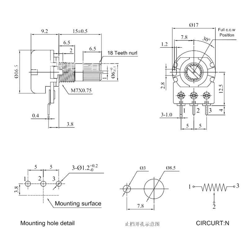- Features and Advantages: potentiometer features a durable metal casing with excellent wear and oxidation resistance, stable conduction performance, and a three-position adjustment capability.