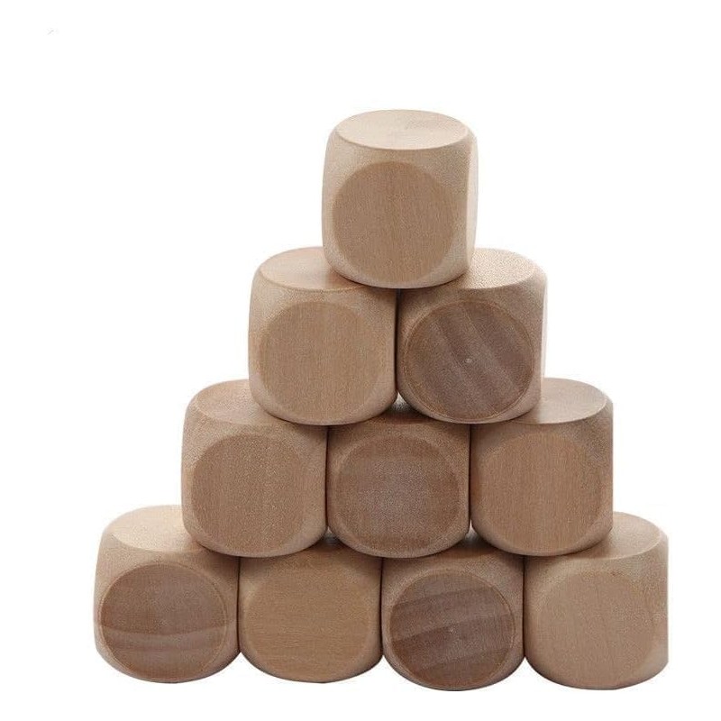 10Pcs Wooden Dice, 6 Sided Blank Dice Round Corner Cube DIY Crafts Party Supplies (1.8cm)