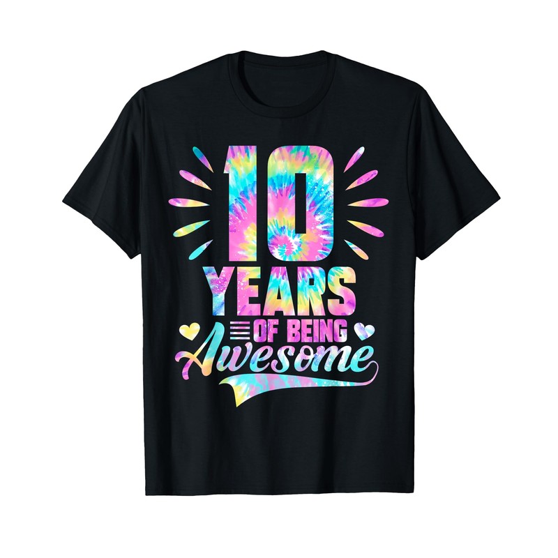 - 10 Year of being awesome is lovely and cute birthday gifts. A sweet design graphics for your daughter, teenager, sister, girlfriends turning 10. Celebrate 10th birthday for your friends, family and share your love with this awesome tie-dye graphics