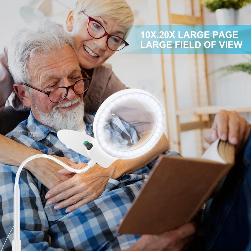 • 10X 20X Magnification:Experience superior 10X high-definition magnification with real optical glass lenses and anti-glare reflective coating. This floor-standing magnifier ensures distortion-free and precise viewing, perfect for delicate tasks such as sewing, electronic repairs, and any close work. No need to worry about eye fatigue even after long hours of use