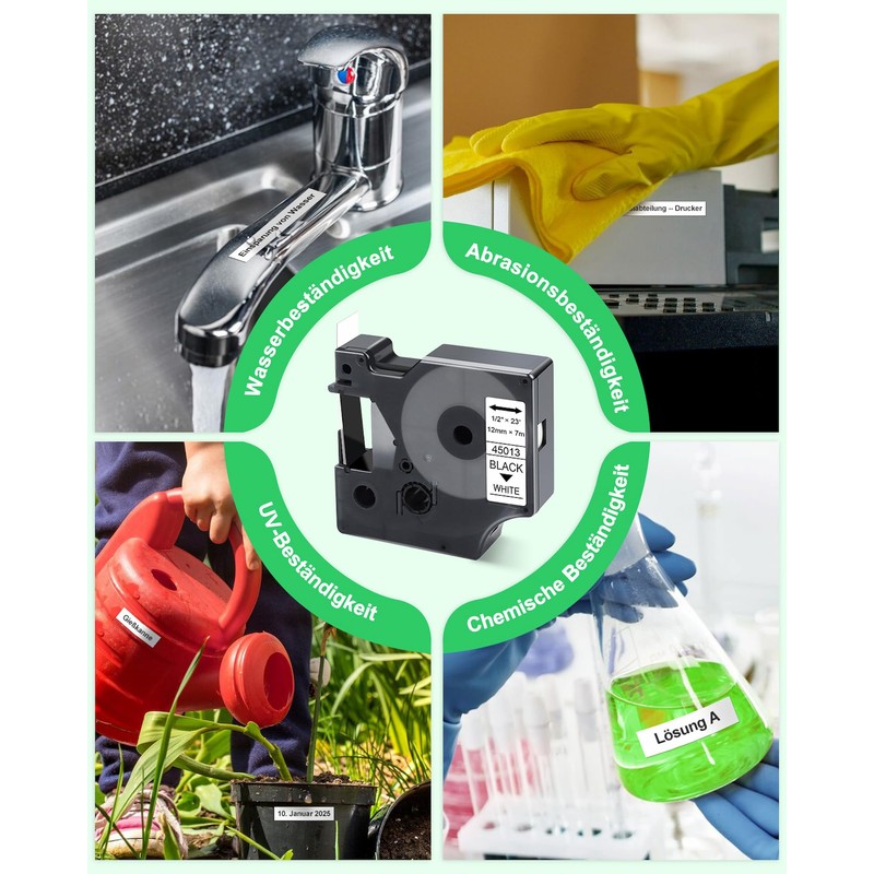 - Compatible with Dymo 45013. Application: indoor and outdoor applications; high temperature and low temperature resistance, waterproof, oil resistance, easy to peel, resistant to fading, abrasion resistance, UV resistant