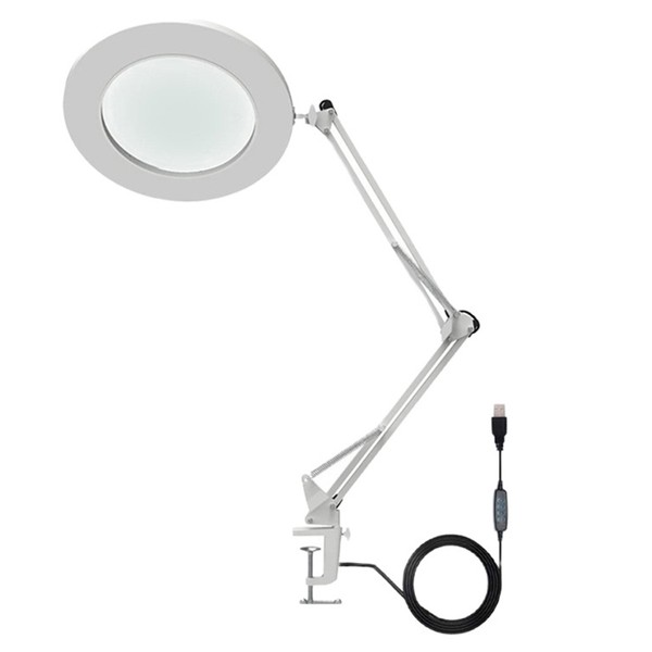 10X Magnifying Glass with LED Light Flexible Arm Brightness Adjustable 3 Colors Workbench Light with Clip White
