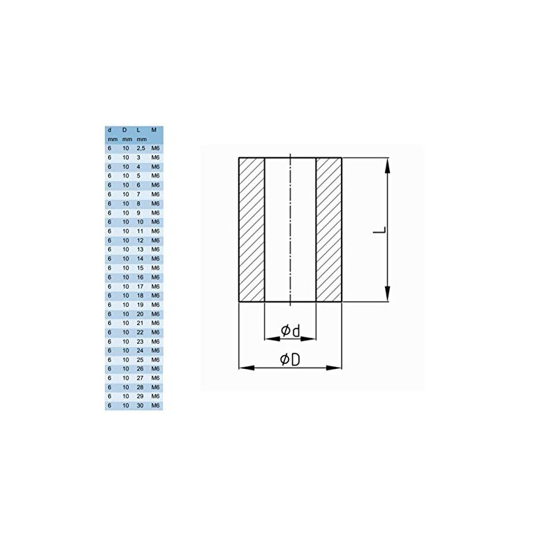 - Inner diameter 6 mm (for M6 screws/tube) - outer diameter 10 mm