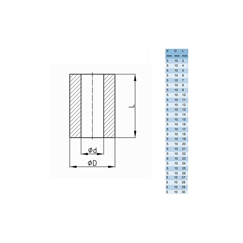 10X Plastic SPACERS M5 Thickness 4MM to 30MM ID 5MM OD 10MM WASHERS Screw Tube (Thickness L (mm) = 18)