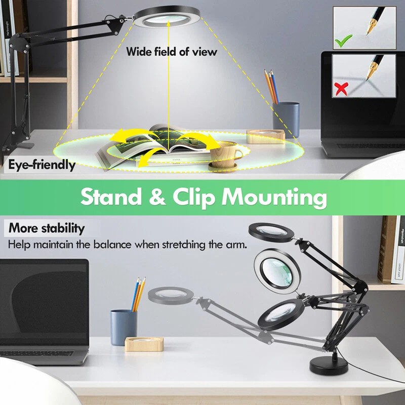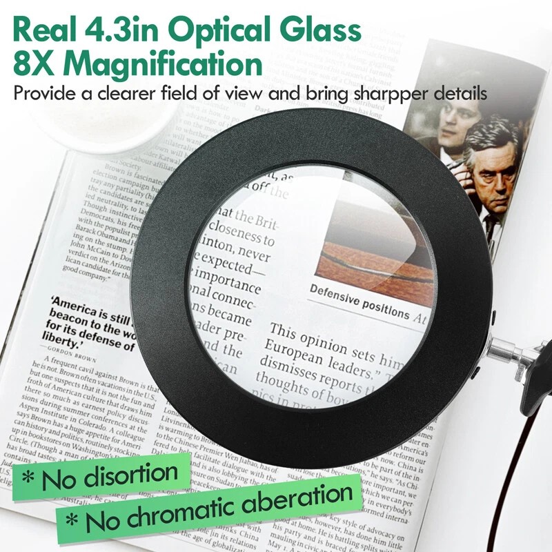 10X Rotundity Magnifying Glass with Light and Stand 3 Color Modes Step With Base
