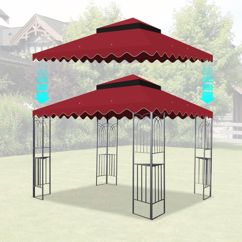 10x10 Ft Outdoor Patio Gazebo Replacement Canopy, Double Tiered Gazebo Tent Roof Top Cover Only (Frame Not Included) - Red
