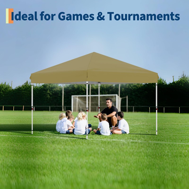 10x10 Instant Pop-Up Canopy with 1 Sidewall – Easy 1-Button Setup, Includes Roller Bag, 3 Height Settings & 4 Weight Bags – Perfect for Backyard, Beach, Sports & Parties,Khaki