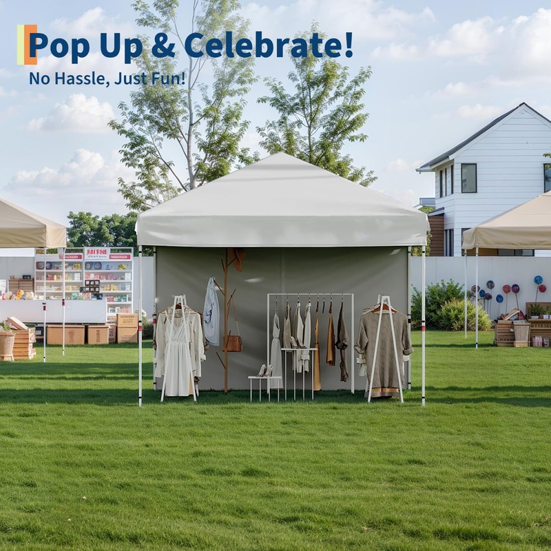 10x10 Instant Pop-Up Canopy with 1 Sidewall – Easy 1-Button Setup, Includes Roller Bag, 3 Height Settings & 4 Weight Bags – Perfect for Backyard, Beach, Sports & Parties,White