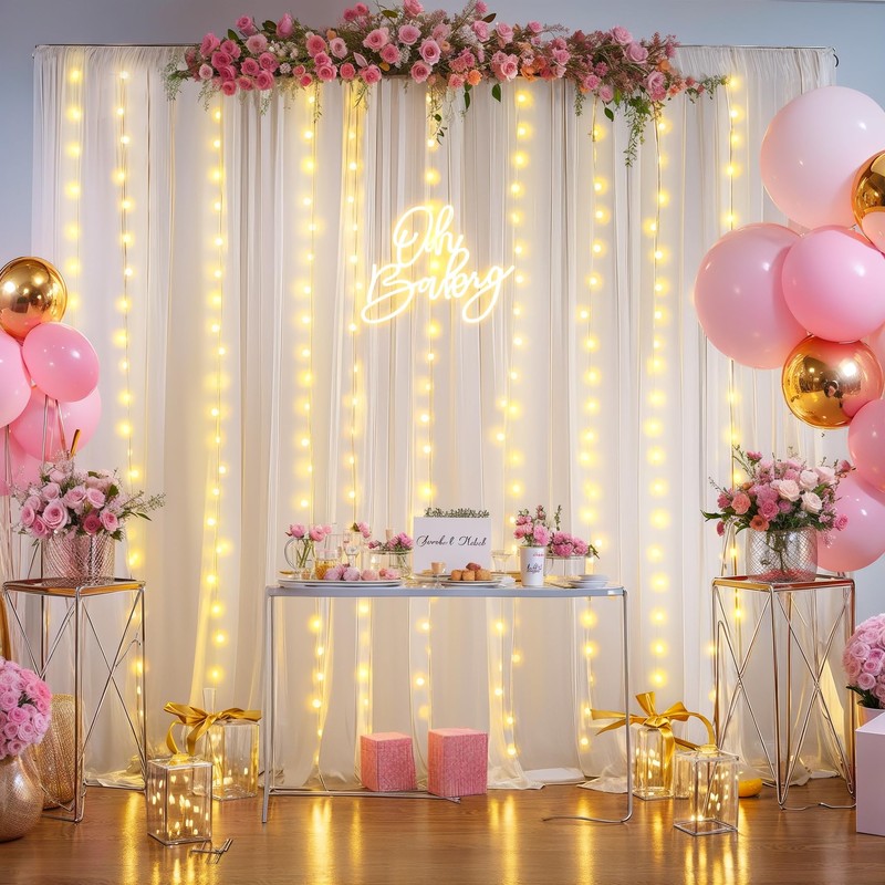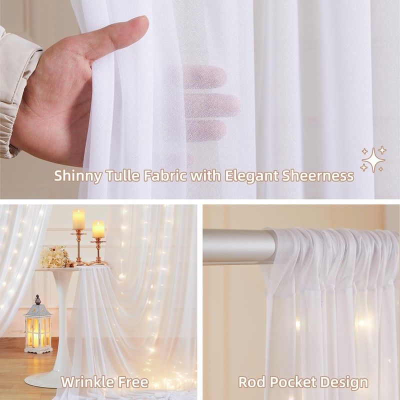 - Wide Compatibility Tulle Backdrop Decoration —— Our tulle curtains with lights for backdrop are wonderful finishing touch for any theme party, used for wedding, birthday party, photography, receptions, catered presentations, bridal and baby shower, celebration, graduation, ceremony, anniversary and so on. Also suit for daily use, various festivals, indoors and outdoors decorations
