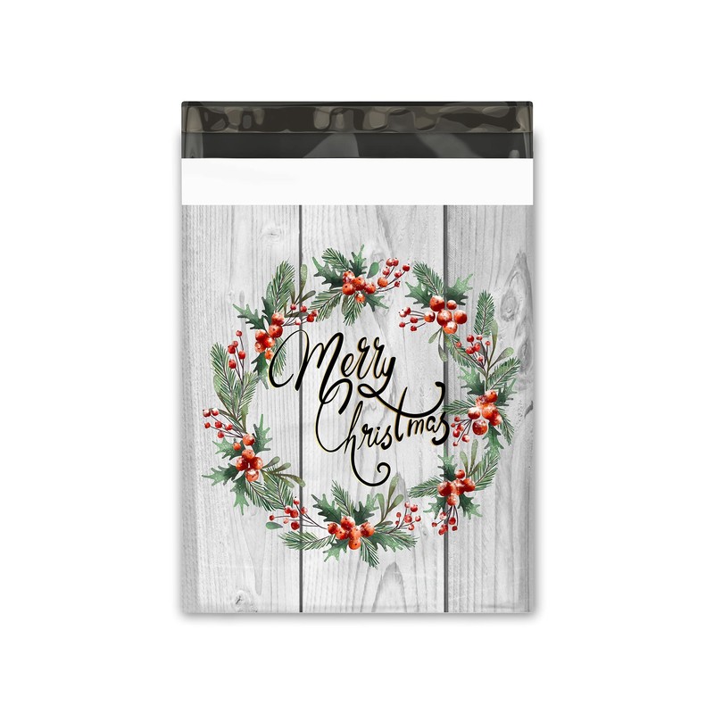 10x13 (100) Christmas Wreath Designer Poly Mailers Shipping Envelopes Premium Printed Bags