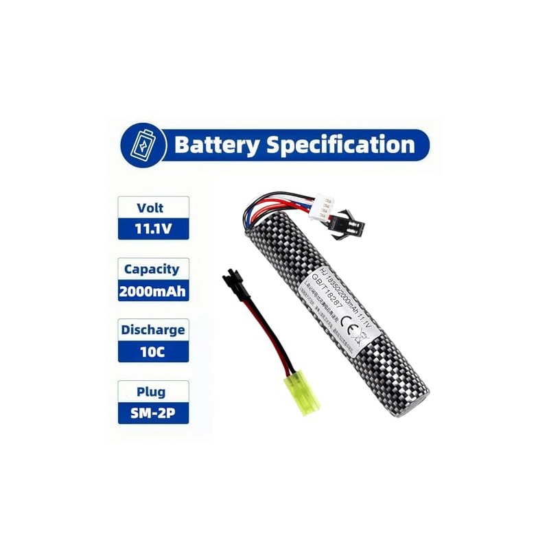 11.1V 2000mAh Airsoft Batería SM2P Plug con sm2p a Tamiya Plug Compatible con Airsoft Batería Recargable