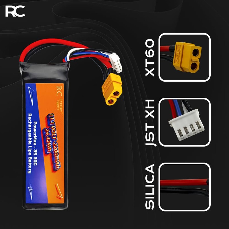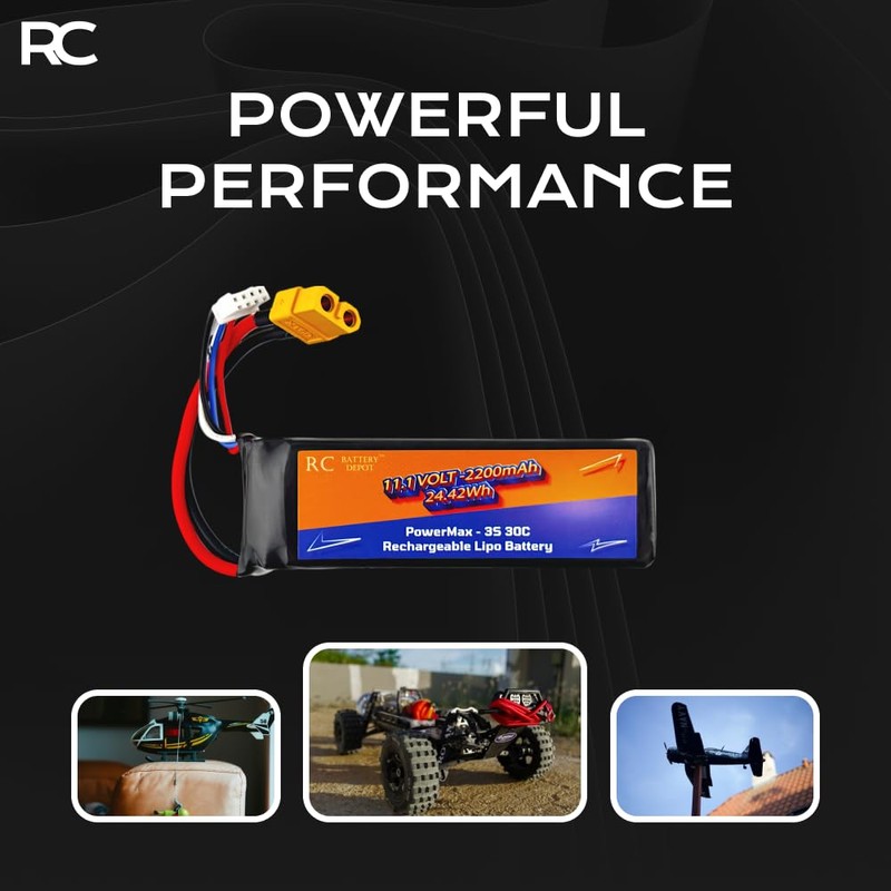 11.1V 2200mAh 3S 30C XT60 Plug RC Lithium-Polymer (LiPo) Battery for RC Toys, Boats, Cars, Planes, High-Capacity LiPo Battery
