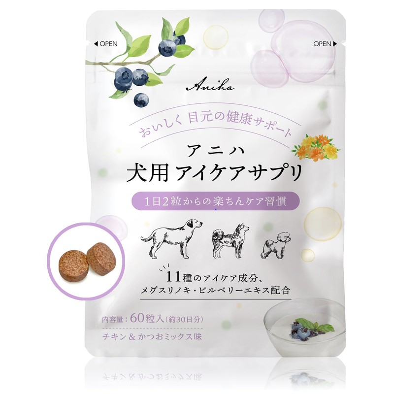 アニハ 犬用 アイケアサプリ【獣医師監修】11種のアイケア成分・22種の乳酸菌・NMN配合 瞳の健康サポート 60粒入り