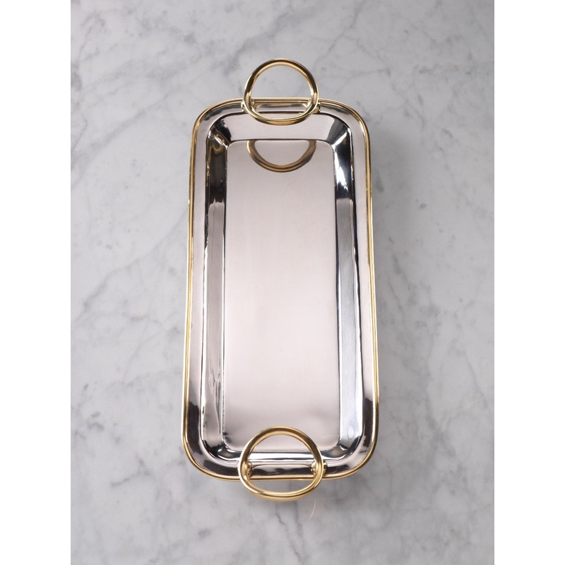11.5" Long Polished Nickel Serving Tray, Gold Rim