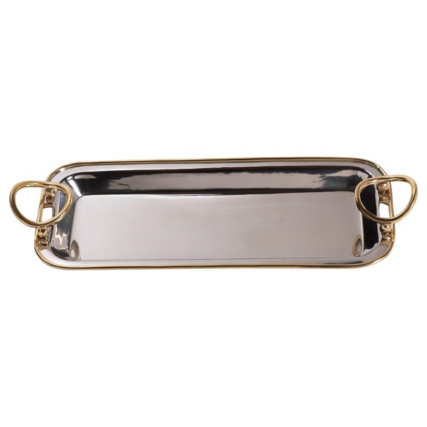 11.5" Long Polished Nickel Serving Tray, Gold Rim
