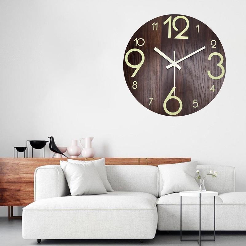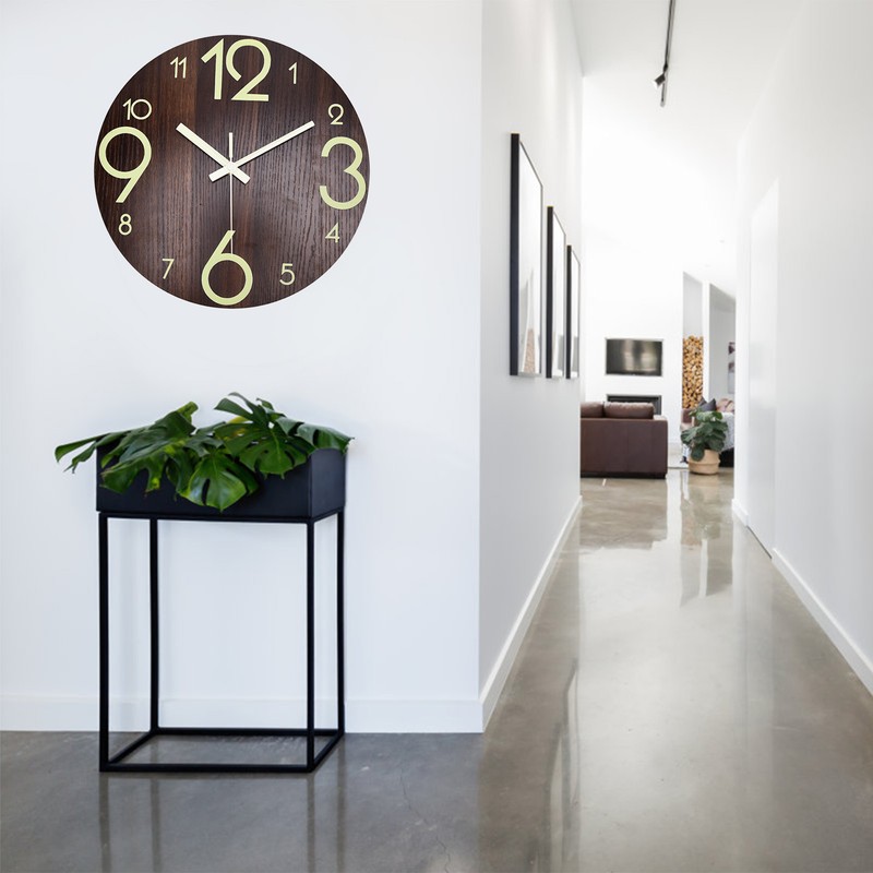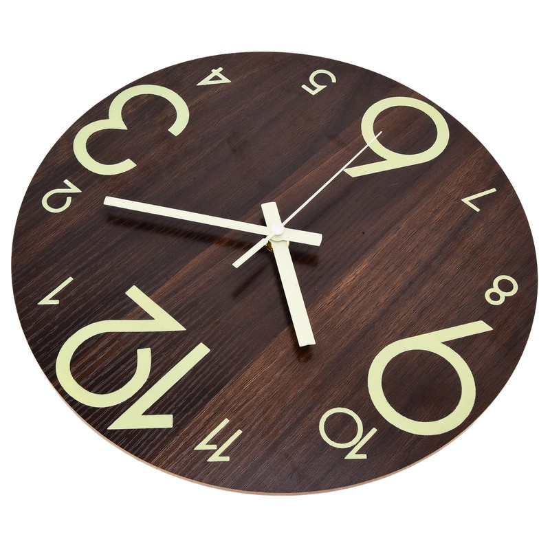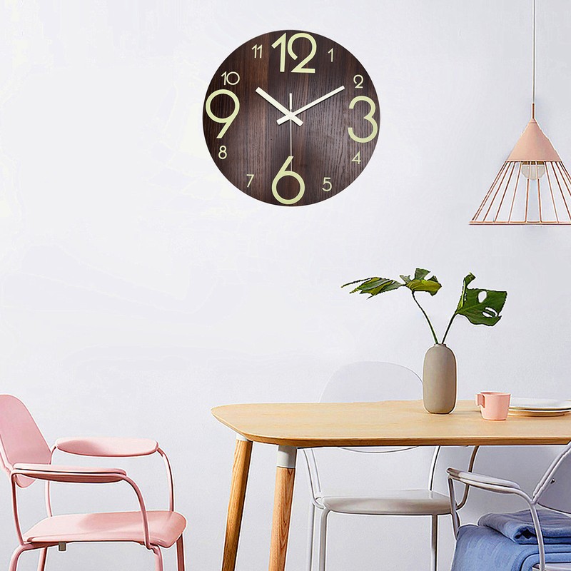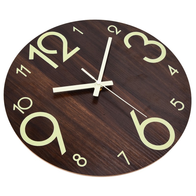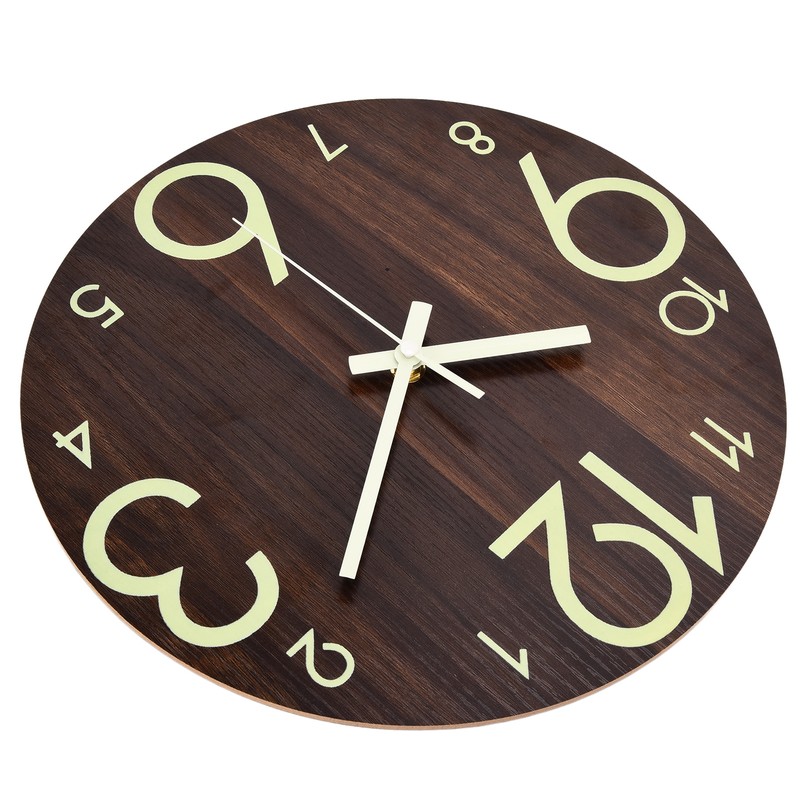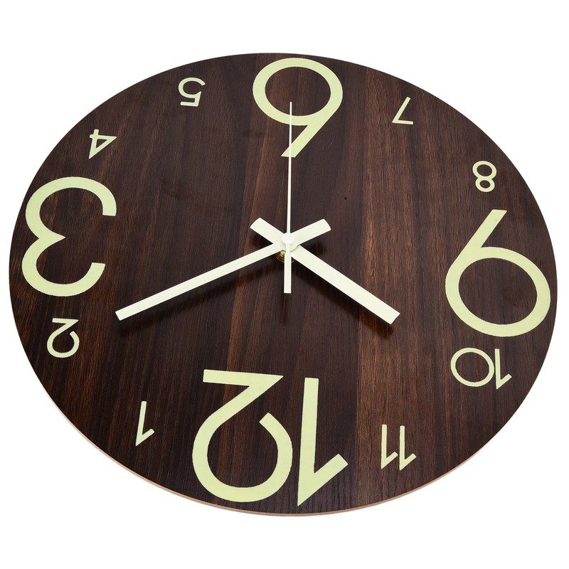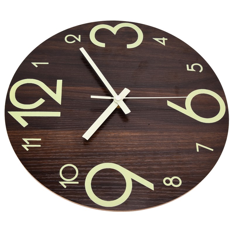 1、Silent Wall Clock: Precise quartz movement ensures accurate timing and absolutely silent environment. 2、Night Light: The luminous wall clock can absorb light energy at day and luminous at night. No need to turn on light can see the time at night. 3、High Quality Material: Wooden luminous wall clock is made of fibreboard, non toxic, durable and has excellent color fastness. 4、Widely Use: The wooden wall clock perfect for dining room, living room, bedroom, classroom, study room, kitchen, office and meeting room. 5、Easy Installation: Back slot design offers easy installation, convenient for hang, save your time and energy.