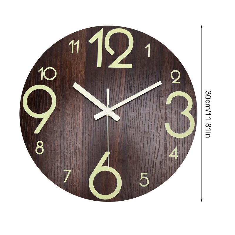 11.81in Luminous Wall Clock Wooden Round Decorative Clocks for Kitchen Office Bedroom