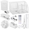 • 【Package List】You will get a set of exquisite white desk organizers and accessories, including 1 white desk organizer, 1 white stapler, 1 white tape holder, 1000pcs 24/6 staples, 1 staple remover, 1 scissors, 1 ruler, 1 pen holder, 1 tape, 1 tabs, 25 paper clips, 7 large binder clips, 13 small binder clips, and 20 thumbtacks.