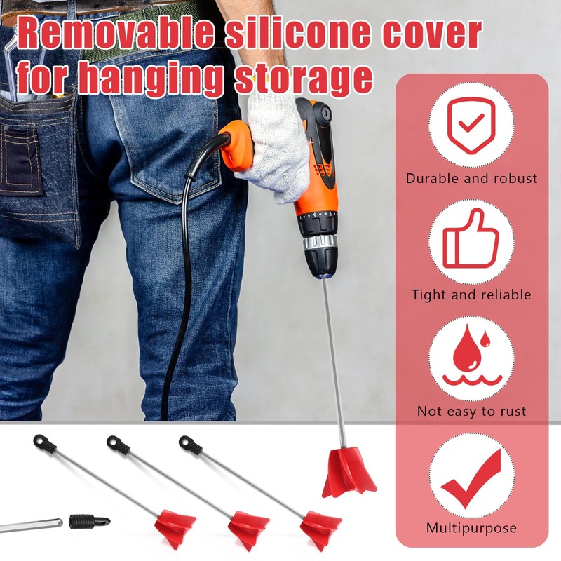 - Sturdy to Use: the front end of gallon paint mixer is thickened, which is not easy to break and bend; And the long rod is made of metal, featuring high hardness, not easy to rust or wear; It comes with a removable silicone hanging ring, which can be hung when not in use, convenient to store