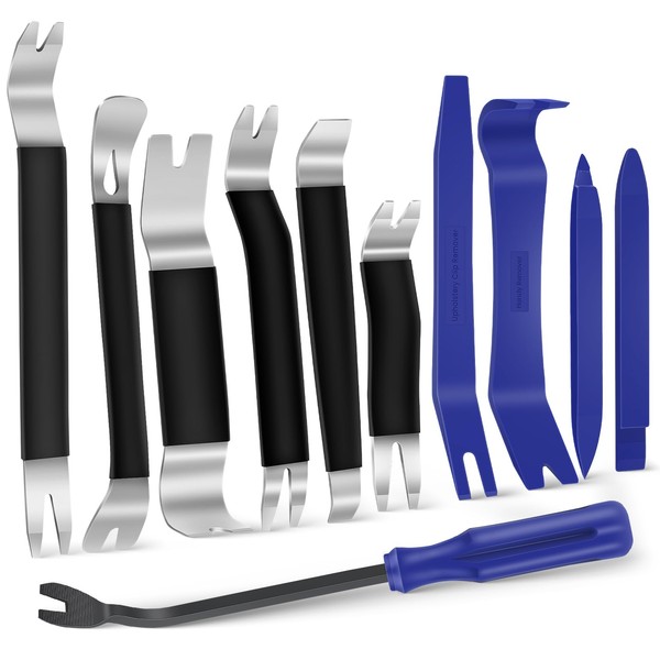 - Efficient and comprehensive: This 11-piece auto trim removal tool kit is designed to make panel and interior installation a breeze. With 7 metal pry tools and 4 nylon trim tools, it covers a wide range of applications