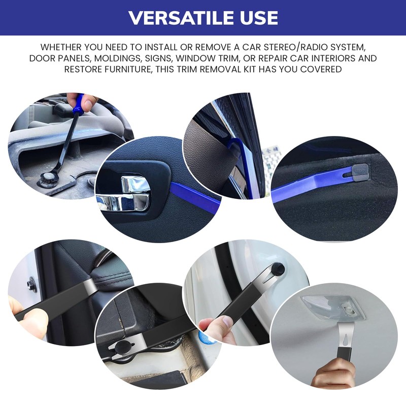 - Versatile use: Whether you need to install or remove car audio/radio systems, door panels, moldings, emblems, window trims, or repair automotive interiors and restore furniture, this trim removal kit has got you covered