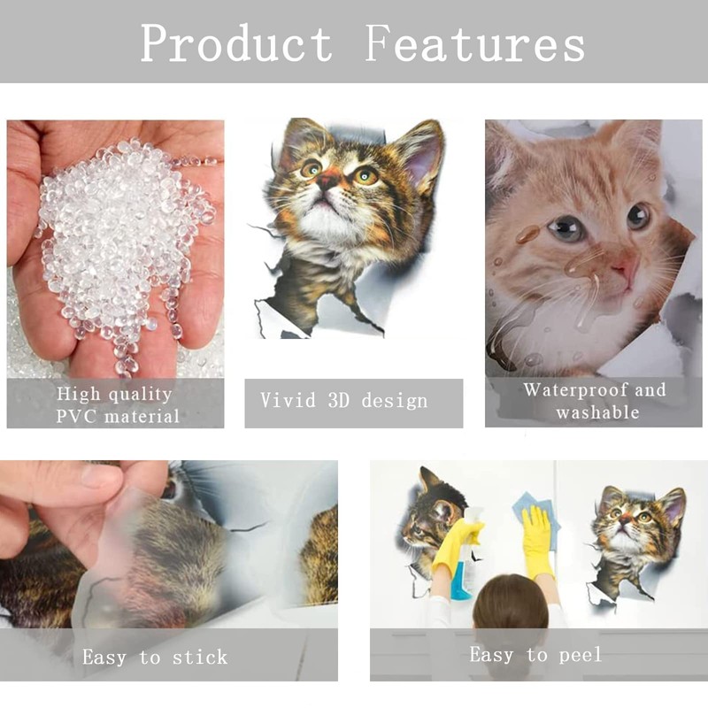 - 🐱【High-quality Material】3D cat stickers for wall is made of high-quality PVC material, non-toxic and tasteless, safe and environmentally friendly. You can use it safely, waterproof and moisture-proof, with smooth surface. The color will not fade, keep bright and colorful, compressive and shock-resistant, durable, and have a long service life.