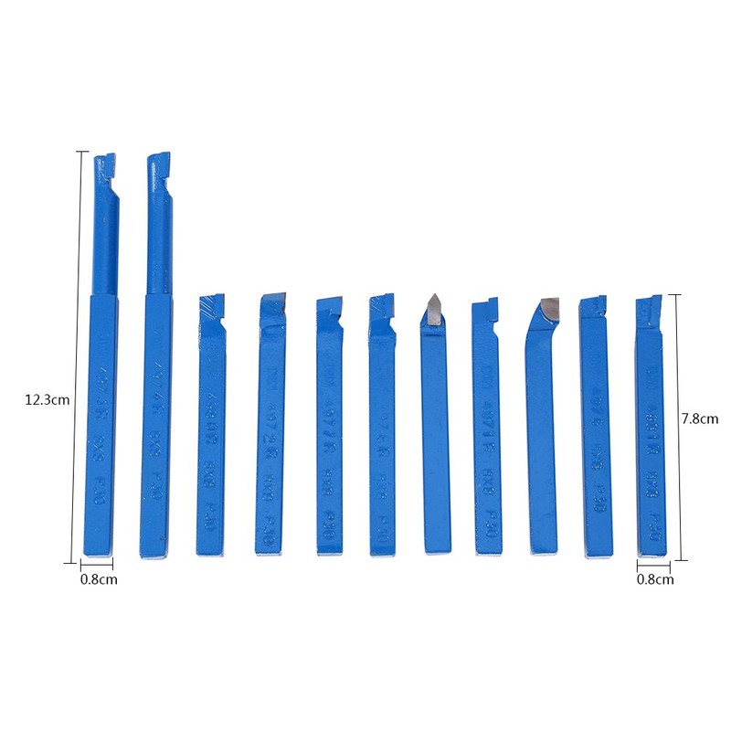11 Pieces 8 x 8 mm Lathe Bit Set Lathe Chisel Kit Lathe Turning Tools Carbide Tipped Weld Milling Cutting Tool Set