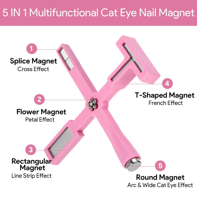 11 Pieces Cat Eye Magnet for Nails Clippers, Magnetic Cat Eye Gel Nail Polish Accessories Art Design Kit Tools, Multifunctional Magnet for Cat Eye Gel Polish Set for Diy Home Salon Studio Pink