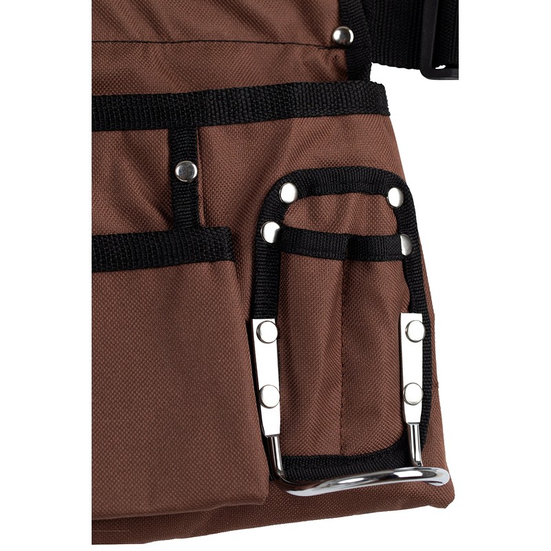 11 Pocket Brown and Black Heavy Duty Construction Tool Belt, Work Apron, Tool Pouch, with Poly Web Belt Quick Release Buckle - Adjusts from 33” Inches All the Way to 50” Inches