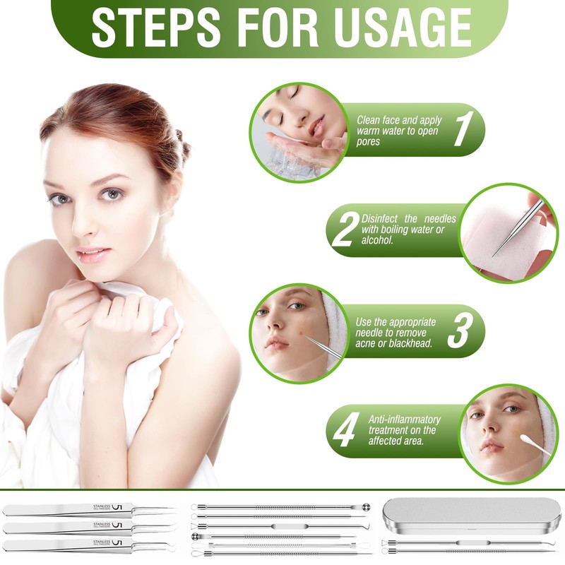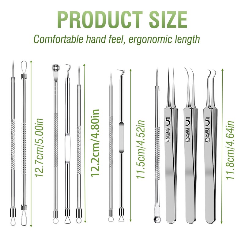 - [Sanfte & Präzise Extraktion] Diese Werkzeuge sind auf Sicherheit und Wirksamkeit ausgelegt, mit scharfen Spitzen, die Ihnen helfen können, Hautunreinheiten zu extrahieren, ohne Ihre Haut zu beschädigen. Der ergonomische Griff bietet einen komfortablen und kontrollierbaren Griff, wodurch er einfach zu bedienen ist und einen reibungslosen und sanften Extraktionsprozess gewährleistet.