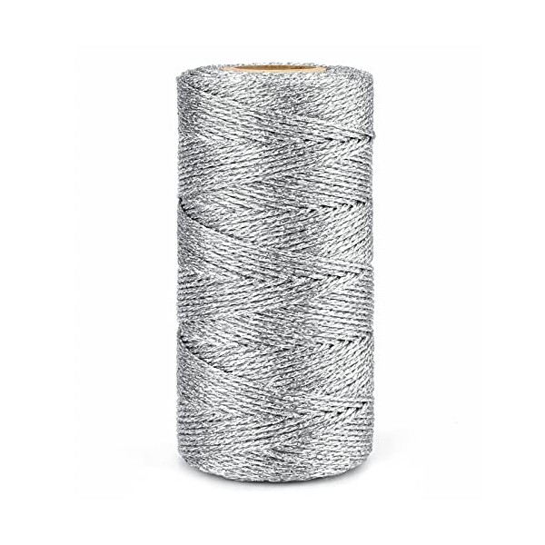 110-Yards Metallic Bakers Twine Silver String Cord for DIY Crafts & Gift Wrapping (Silver)