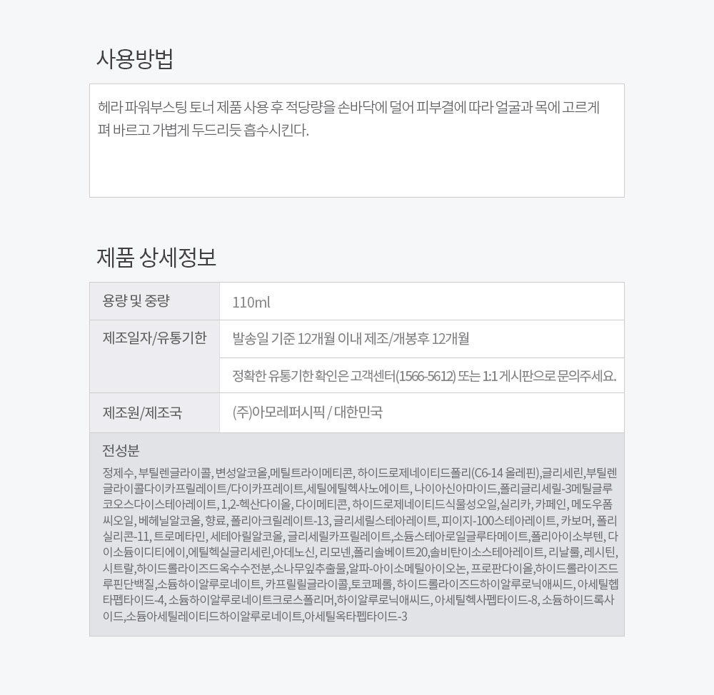 - how to use: After applying Hera Power Boosting Toner, dispense an appropriate amount onto the palm and evenly spread it over the face and neck according to skin texture, then lightly pat to absorb.