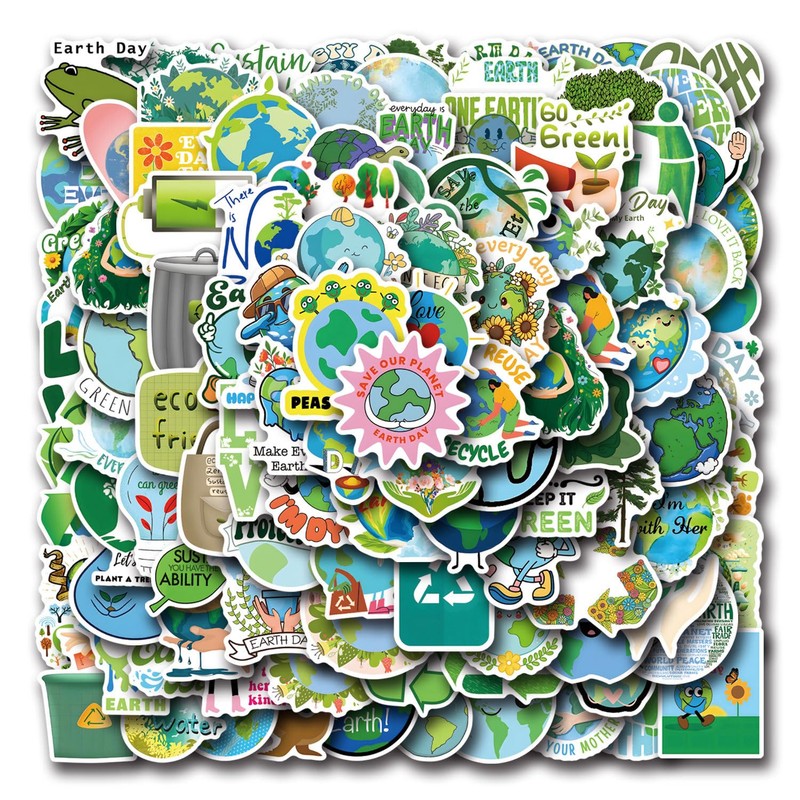 110PCS Environmental Protection Stickers – Earth Day & Nature Themed Vinyl Decals for Water Bottle, Laptop, Scrapbook, Bicycle, Phone, Skateboard – Green Conservation, Forest & Marine Protection
