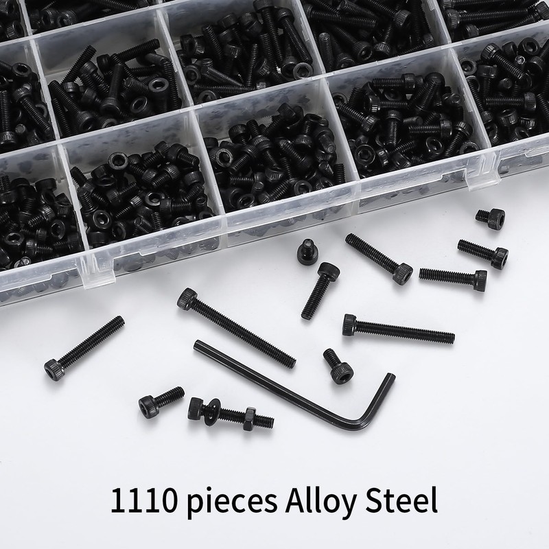 1110 Pieces M3 Screws Nuts Assortment Set, Hexagonal Button Cylinder Screws with Hexagon Socket Thread Screws with Nuts, Hex Bolts, Carbon Steel Machine Screws