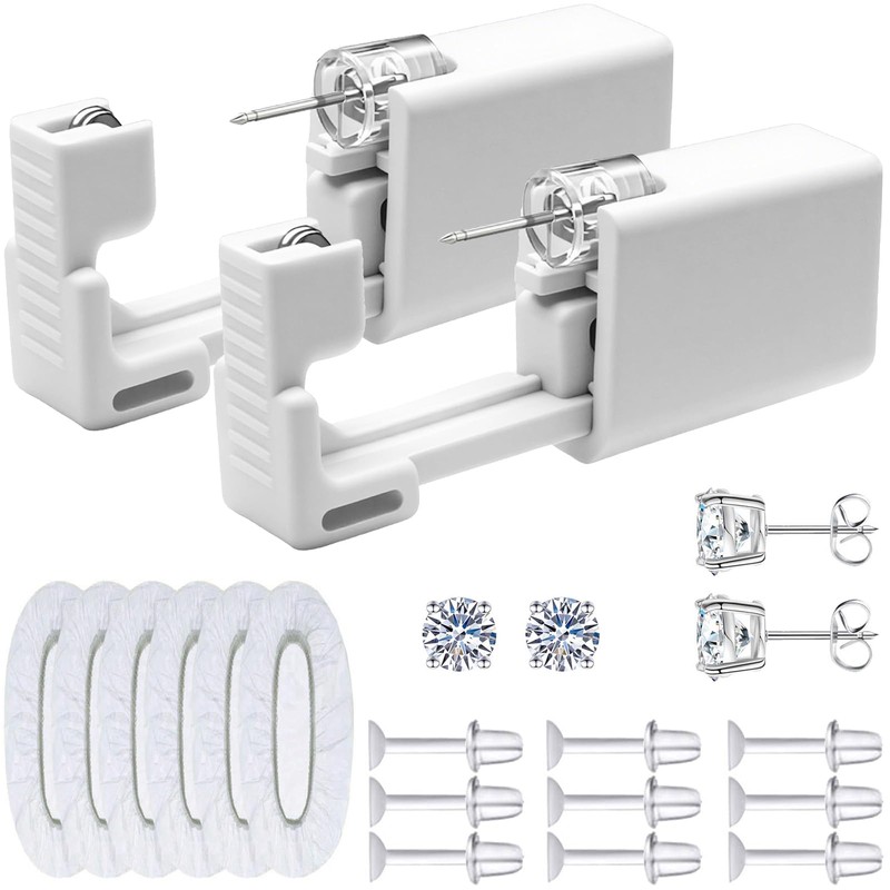- What You Get Package includes - 100 Pcs Clear Invisible Earring and 6 Pcs Clear Waterproof Ear Covers + 2 Pcs Self Piercing Gun + 2 Pcs 20 Gauge Cubic Zirconia Ear Stud (Ear Stud are preloaded in the ear pierce gun) + 2 Pcs Alcohol Pads. Total of 112 Pcs
