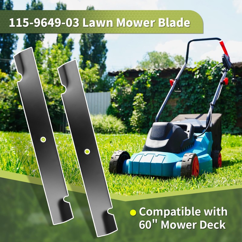 - [Specification] Package includes 6 x 115-9649-03 blade. Length: 20-1/2", Width: 2-1/2", Thickness: 1/4", Center Hole: 5/8". Before ordering, please make sure the lawn mower blade matches your mower.