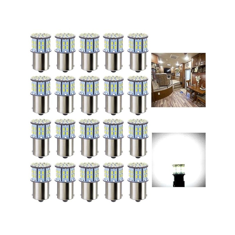 1156 1141 1003 7506 BA15S LED Bulbs Xenon White 20-Packs, Super Bright 3014 50-SMD LED Replacement for 12 Volt RV Camper Trailer Boat Trunk Interior Light Bulbs