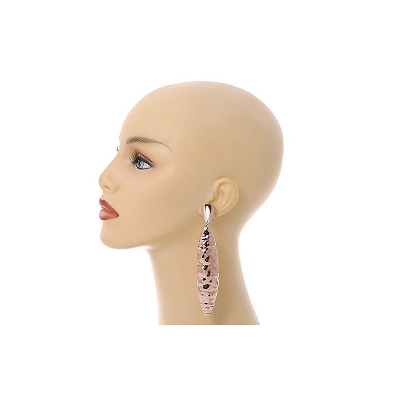 115mm Tall/Large Contemporary Hammered Leaf Clip On Earrings/Rose Gold Tone Metal