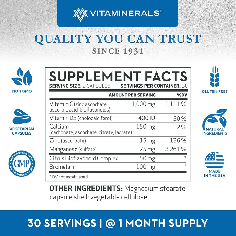 **Manganese and calcium** , which are useful for connective tissues and improving bone structure. Vitamin D, which aids in calcium absorption and works as an immune modulator that can relieve pain through reducing inflammation. Lastly vitamin C, which can improve the health of ligaments, bone development, bone quality, tendons and collagen production.