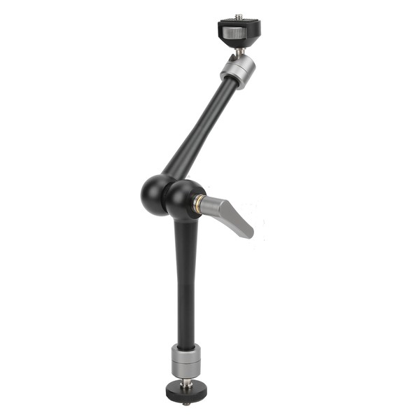 1、11‑inch magic arm, convenient for video shooting, expand microphone, fill light, monitor and other shooting equipment. 2、Adopt general 1/4in screw, with 1/4in screw to 1/4in screw hole adapter and 1/4in screw to cold shoe adapter, strong compatibility. 3、The angle can be adjusted arbitrarily in 360 degrees to meet your various angle needs. 4、The body is made of aluminum alloy, strong and durable, and the surface is painted to prevent corrosion and oxidation. 5、Using the latest one‑key lock, a single damper can lock three axes at the same time.