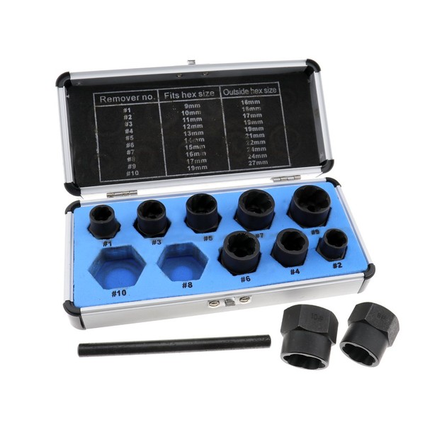 - 10pc Nut Bolt Extractor Socket And Tommy bar Set