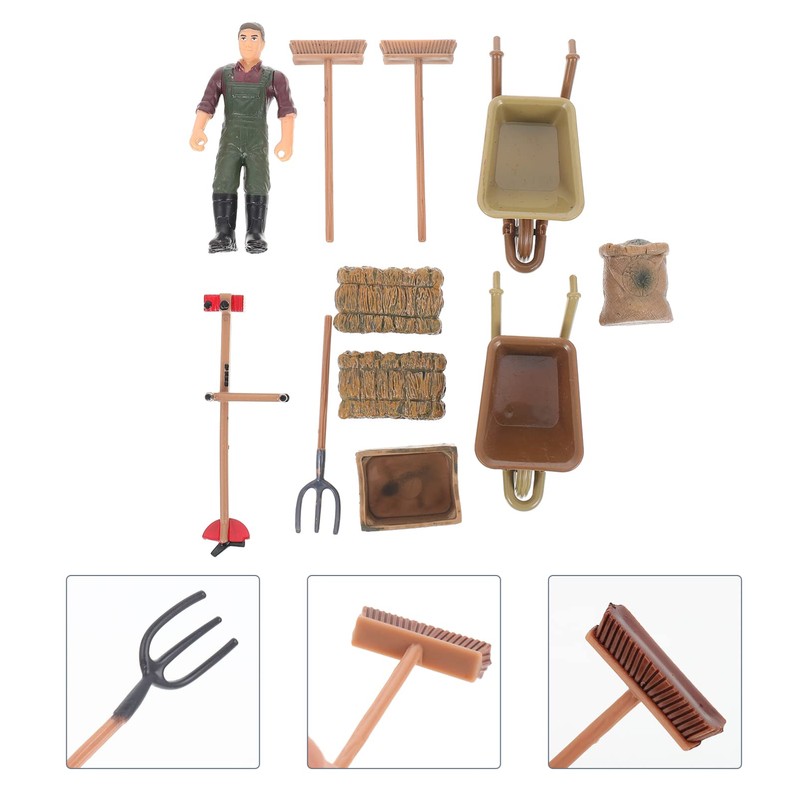 11Pcs/ Set Farm Tool Toy Farm Feed Food Accessories Set Includes Bale Straw Heap Fork Cart for Miniature Scene